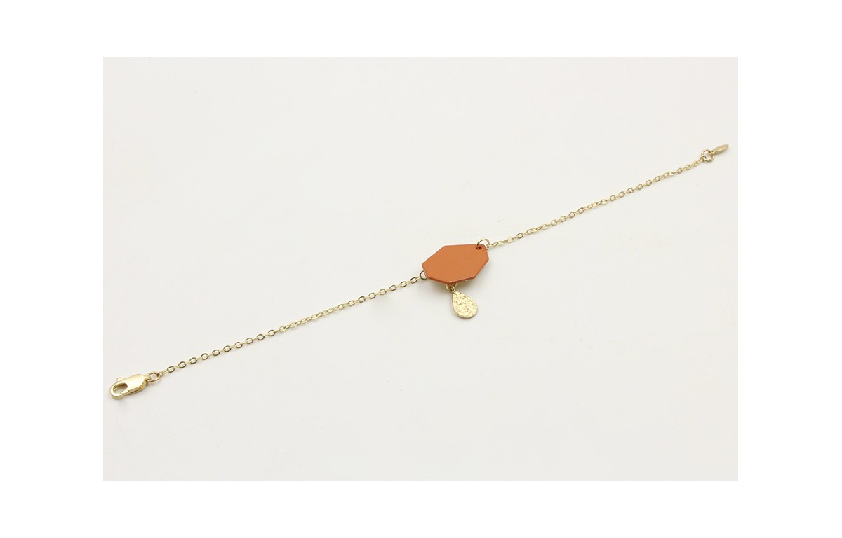 Pulsera cadena de eslabón doarado mate con hexágono teja. Largo 17cm.
