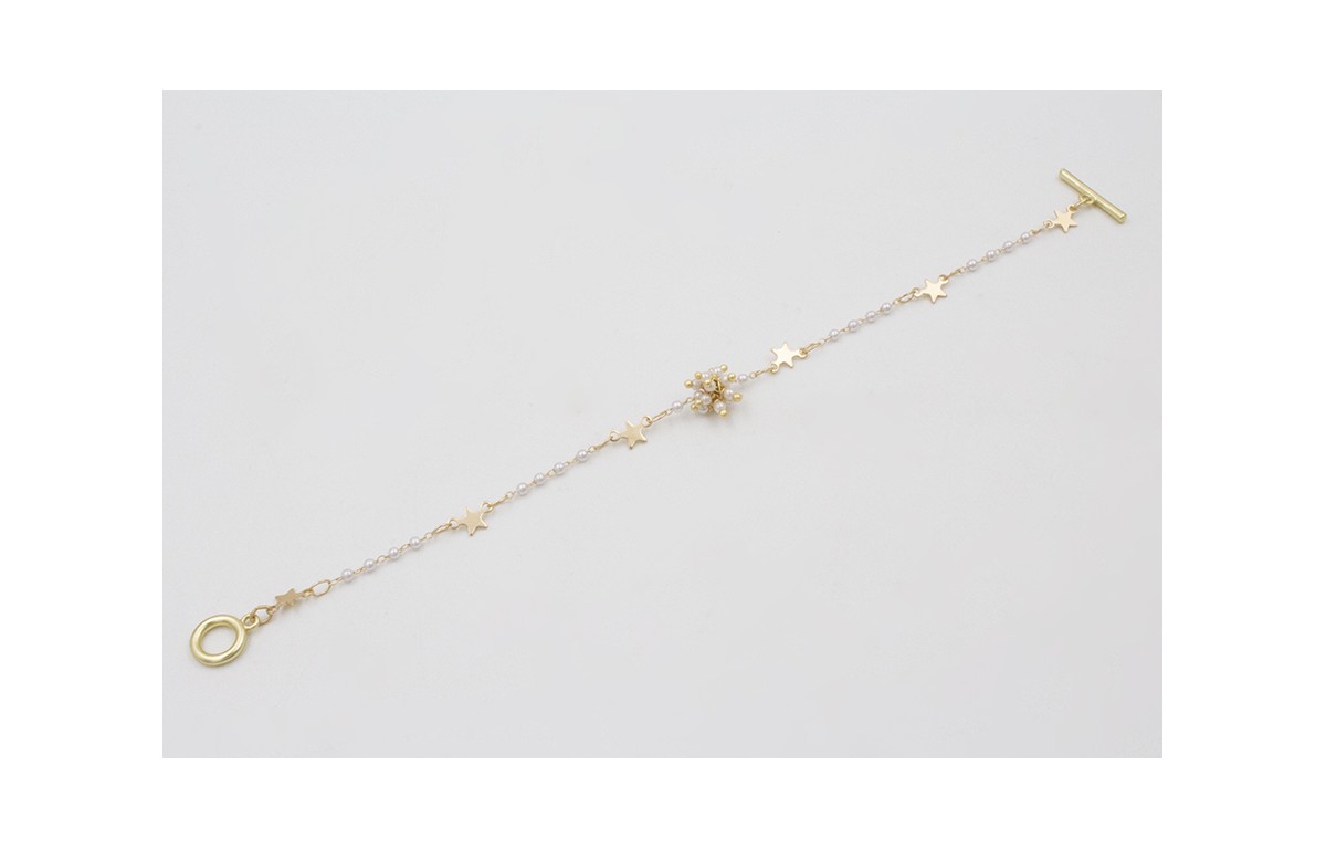 Pulsera cadena eslabón estrella con perla intercalada, burruño de perlas y cierre T pequeño. Largo 17cm.