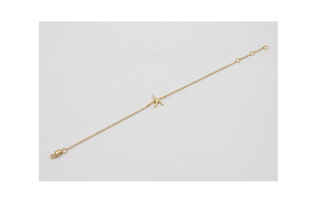 Pulsera ORO 18K-3 micras cadena eslabón pequeño y entrepieza estrella mar. Largo 17cm