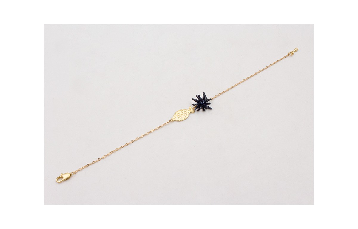 Pulsera cadena con pez dorado plano y estrella coral azul oscuro