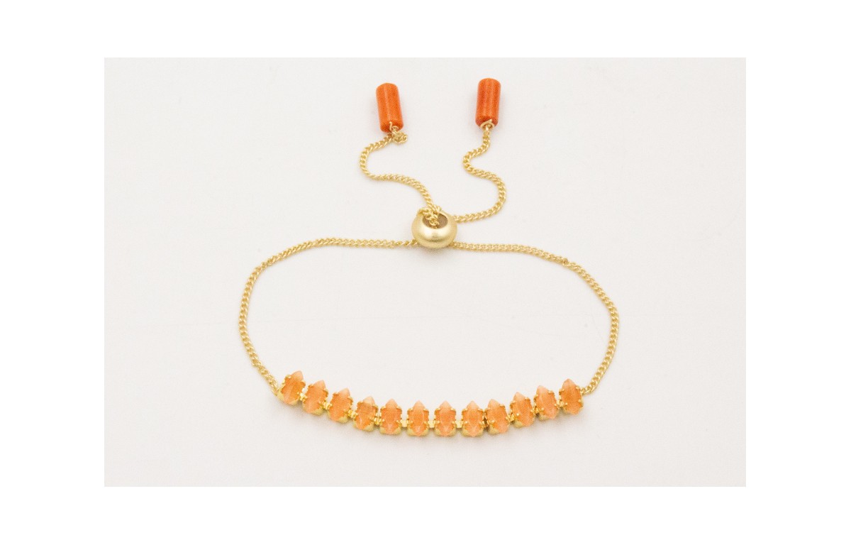 Pulsera cadena strass cristal naranja con cadena eslabón pequeño dorado mate.