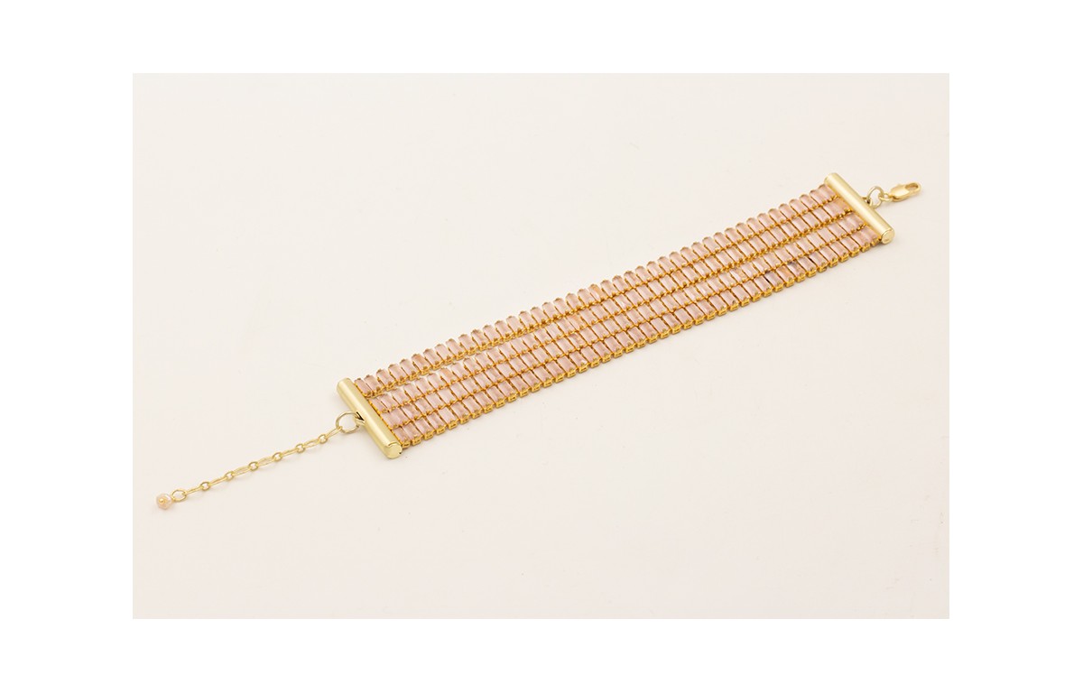 Pulsera 4 vueltas cadena de strass rectangular color rosa.
