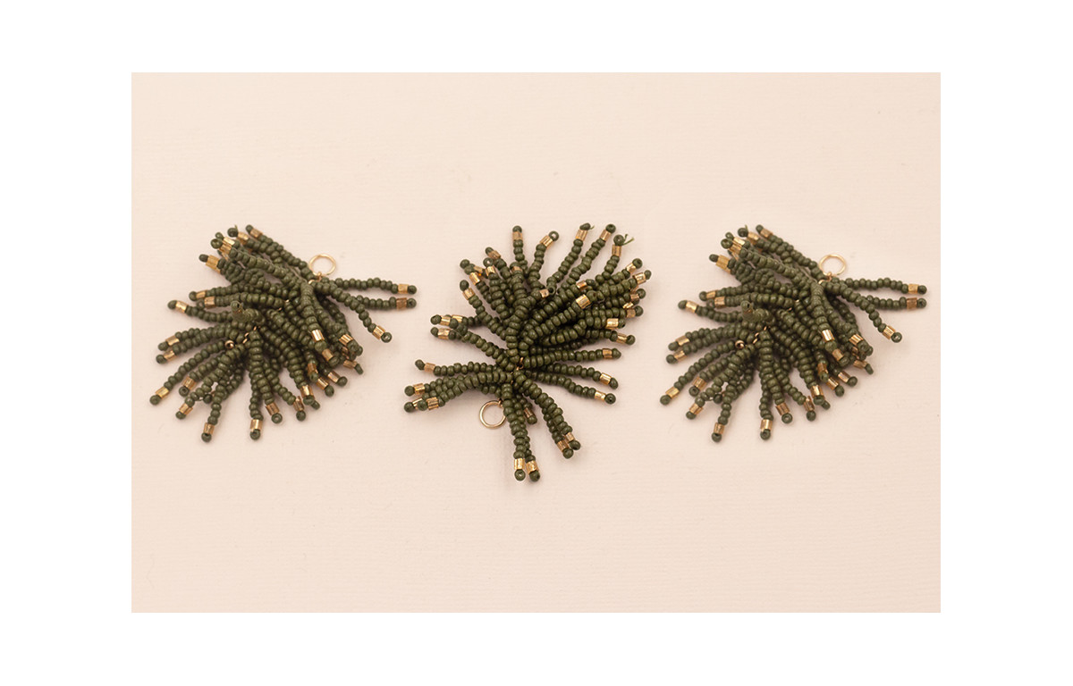 Pompon Abalorio 40mm Kaki y Bronce