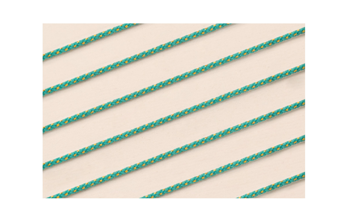 Cordón de 1,5mm con Hilo Dorado Color Turquesa