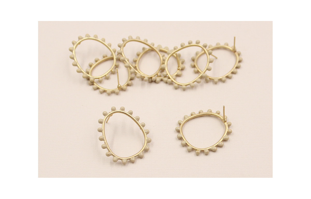 Pendiente Aro 26*22mm Bolas Beiges de 3mm