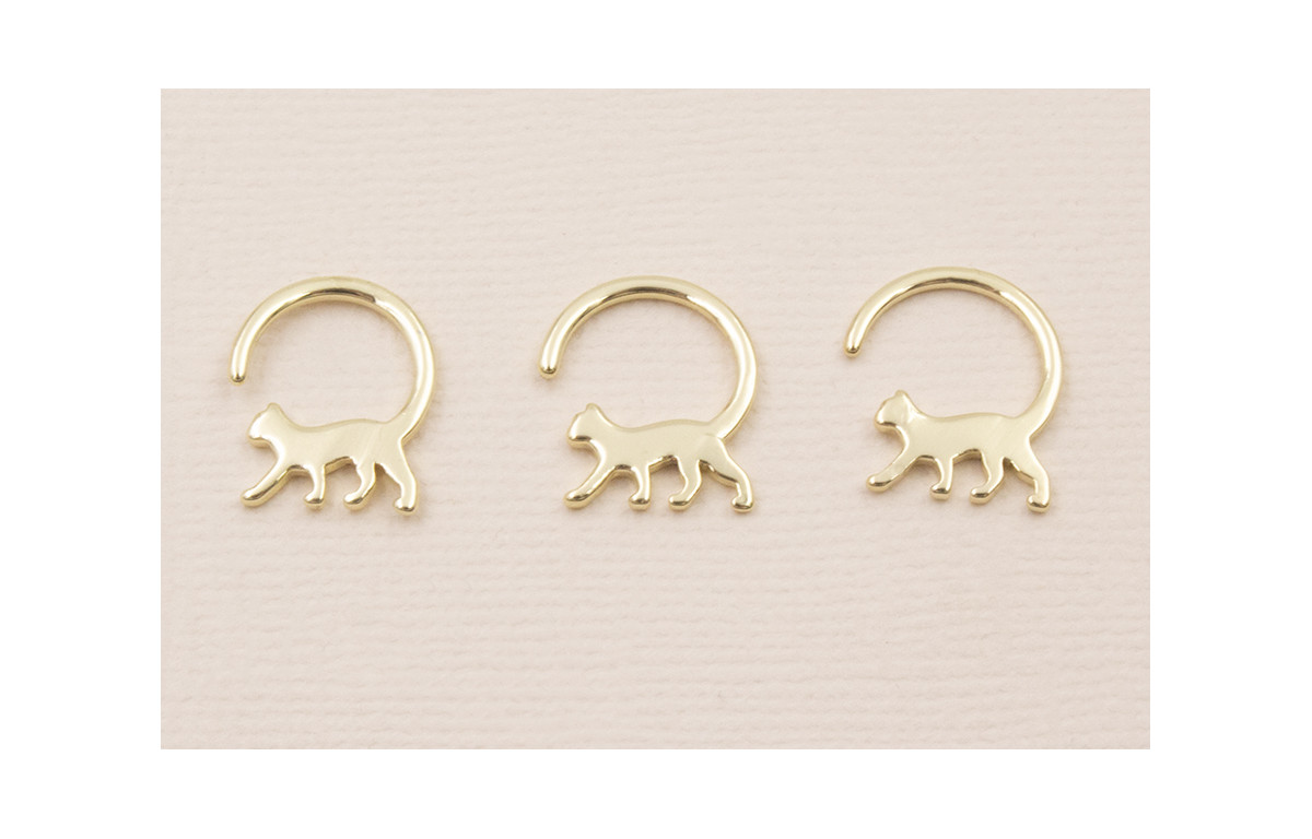 Stainless Steel. Aro Gato Pendiente 15mm Dorado