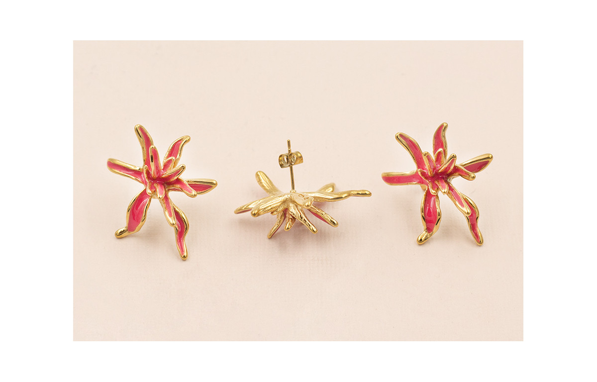 Pendiente Acero Inox. Flor Irregular 32*25 Rosa