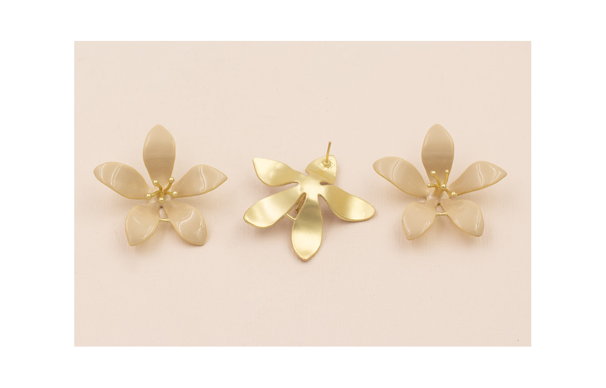 Pendiente Flor Oro Mate Esmalte Beige 35mm