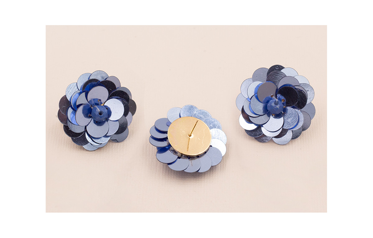 Pendiente Flor Lentejuelas 30mm diametro Azul