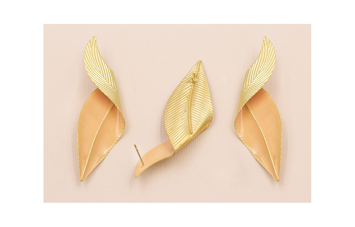 Pareja Pendientes Hoja Doblada 70*20 Esmalte Rosa
