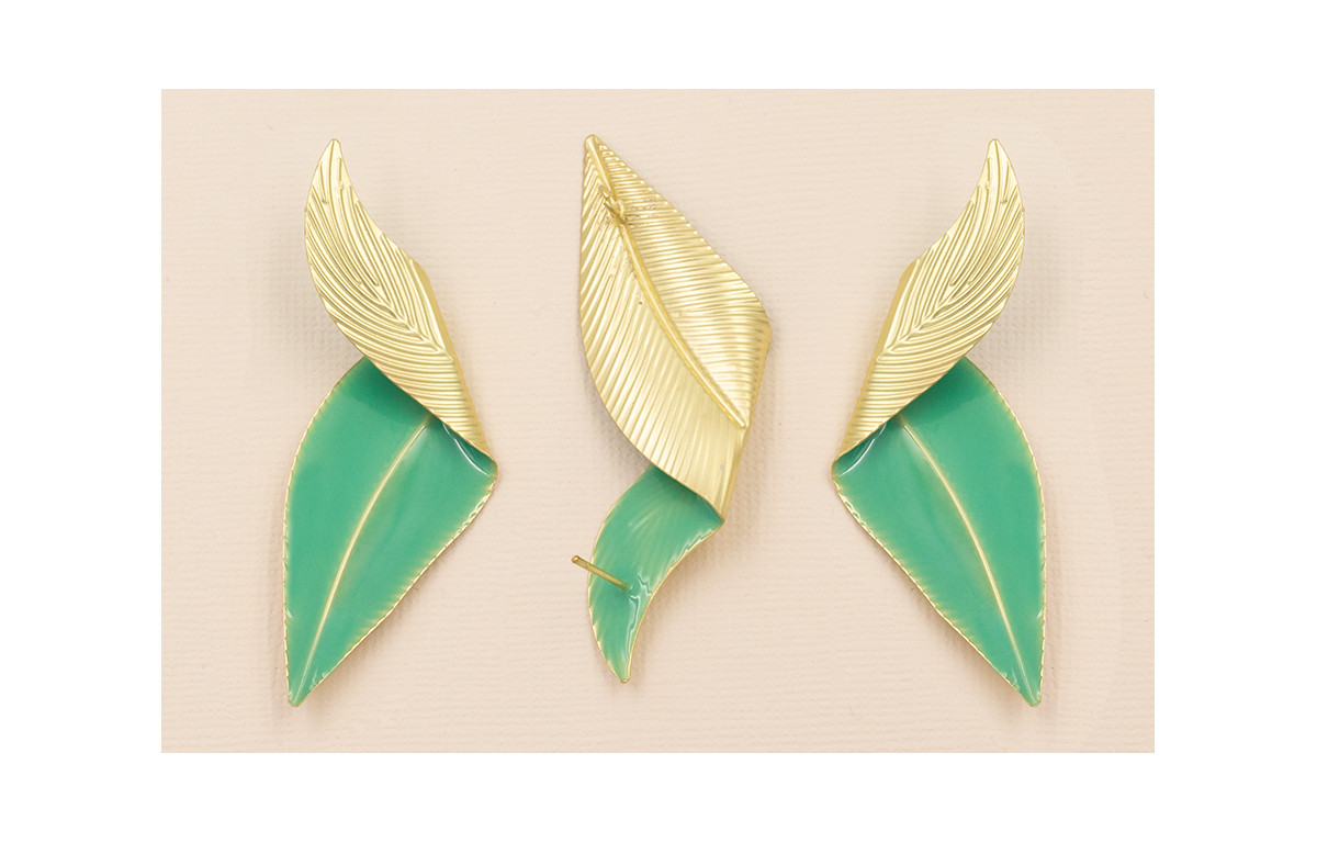 Pareja Pendientes Hoja Doblada 70*20 Esmalte verde