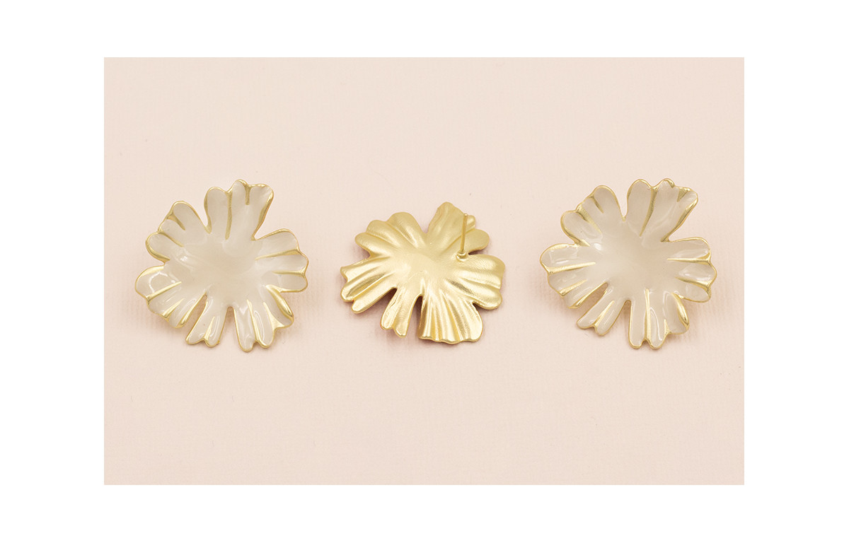 Pendiente Flor Oro Mate esmalte Beige 33mm diam