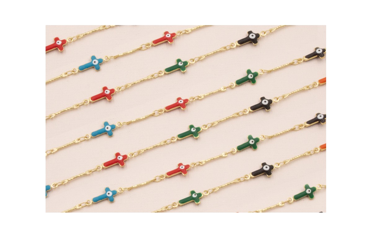 Cadena Cruces 17*7 multicolor Ojo Turco Oro Mate