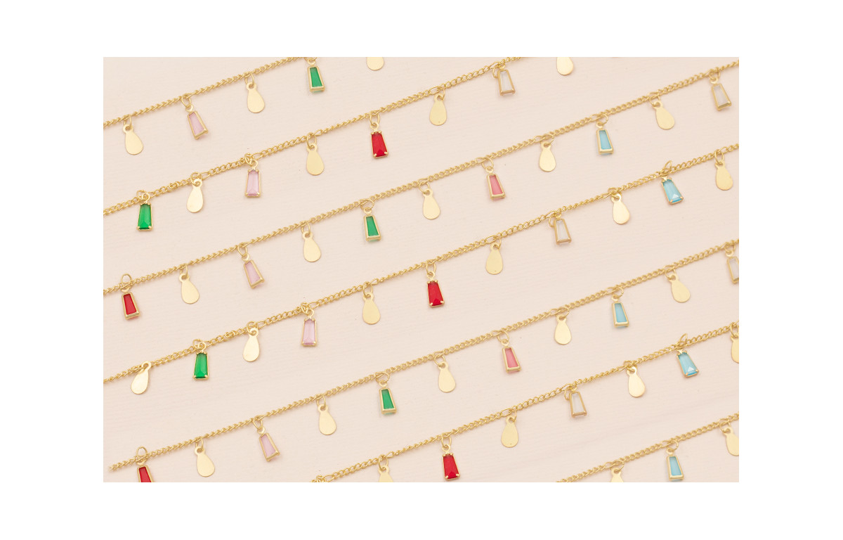Cadena Oro Mate colgantes cristal multicolor 10mm