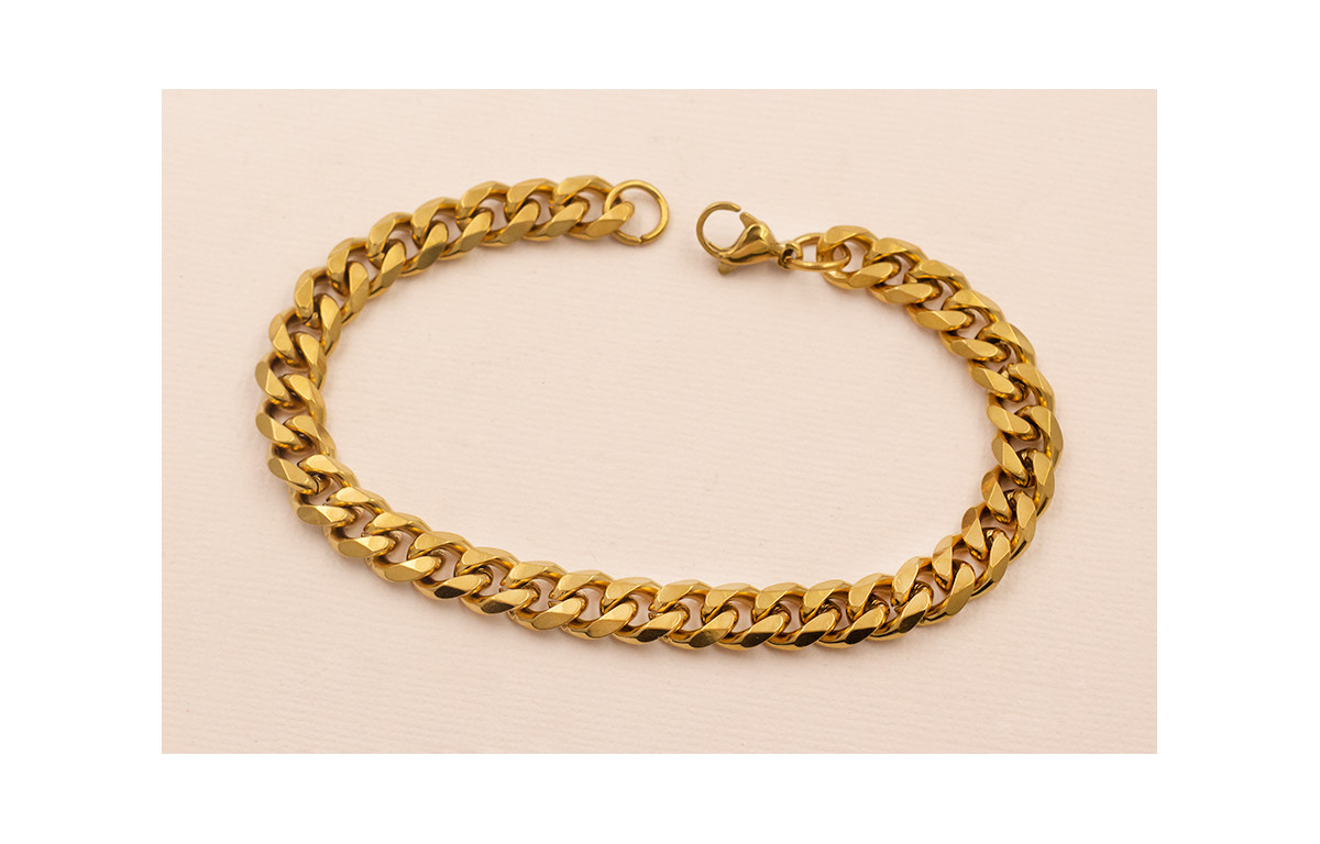 Pulsera Completa Acero Inox. Eslabón de 8*3mm Oro