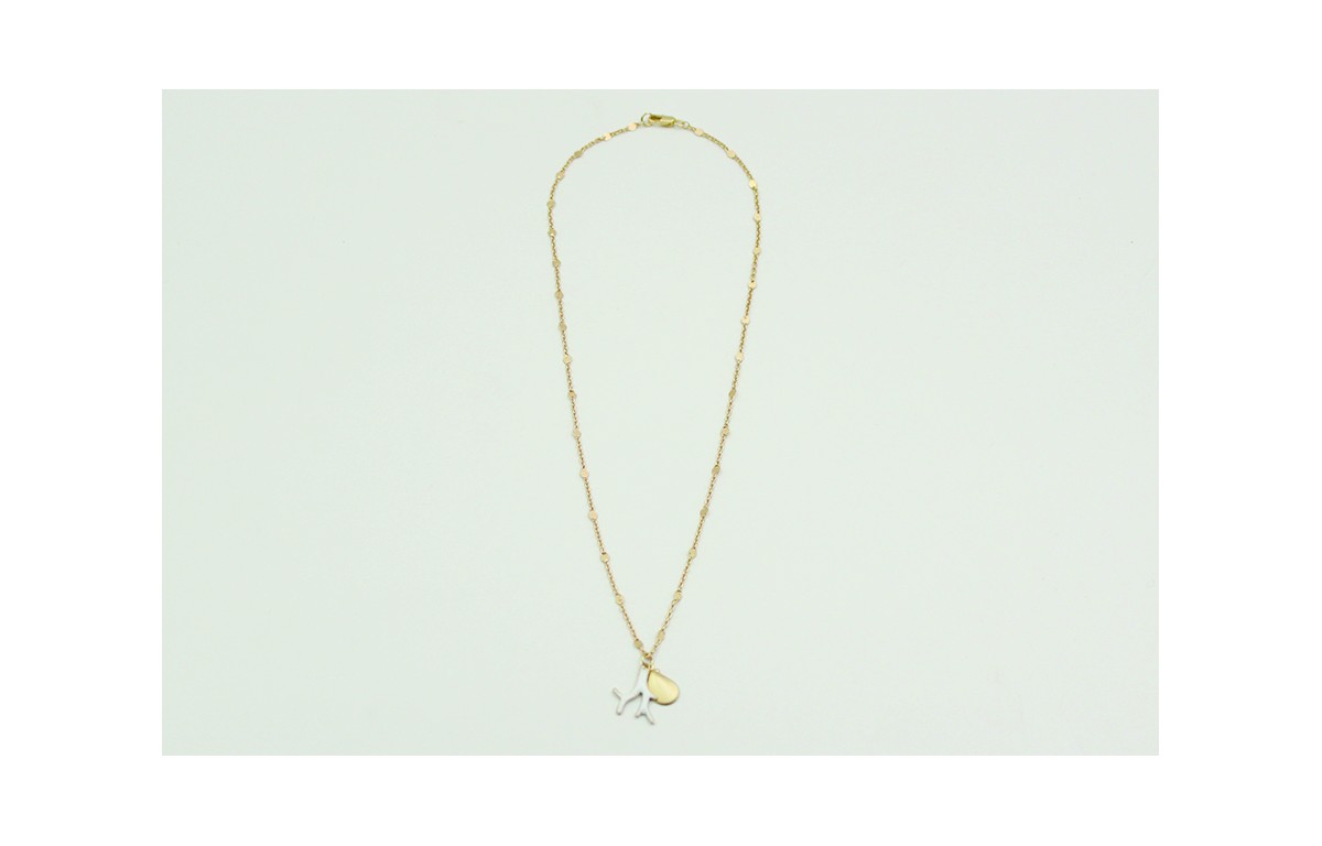 Solitario cadena de eslabon pequeño en oro matey colgante de rama coral esmaltado blanco y mejillón oro mate