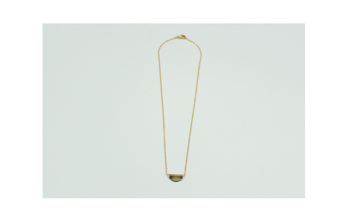 Solitario con mini terminal en latón y cadena de eslabón pequeño en acero inoxidable dorada. Largo del collar 40cm.
