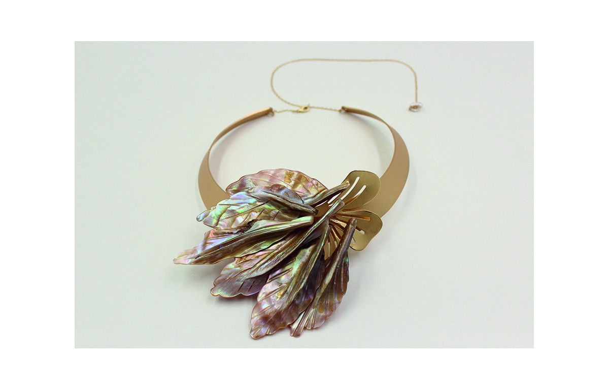 Collar rigido ancho con flores de nacar y flor tre