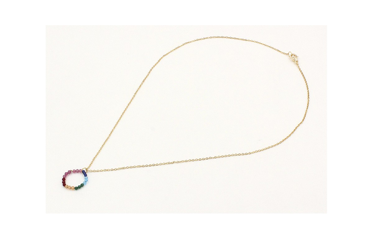Collar con cadena de acero inoxidable y colgante aro cristales de colores. Largo 42cm.