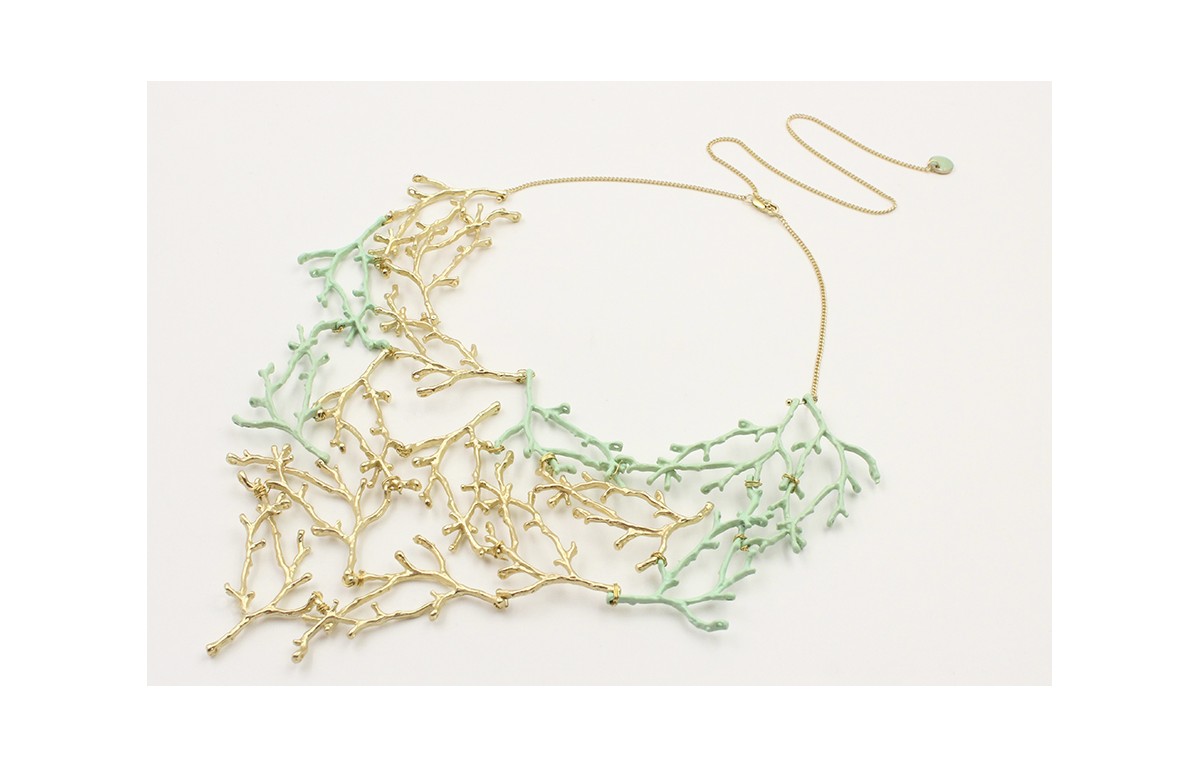 Collar ramas de coral en color turquesa y oro mate