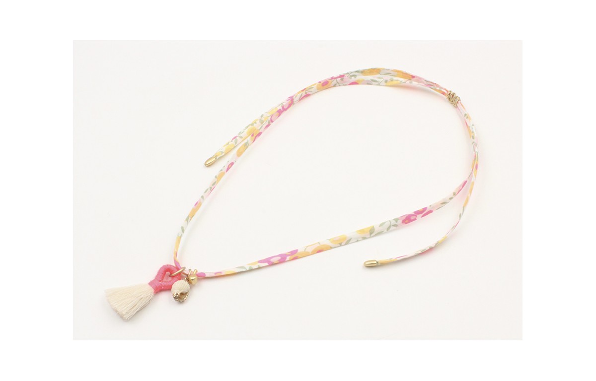 Collar lazo liberty flores fuxias con colgante car