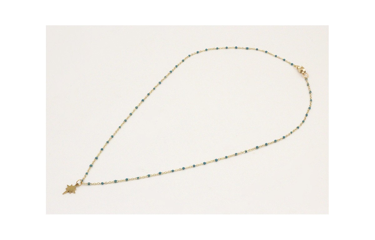Solitario acero inoxidable cadena micro esmalte azul con colgante brújula. Largo 40cm.