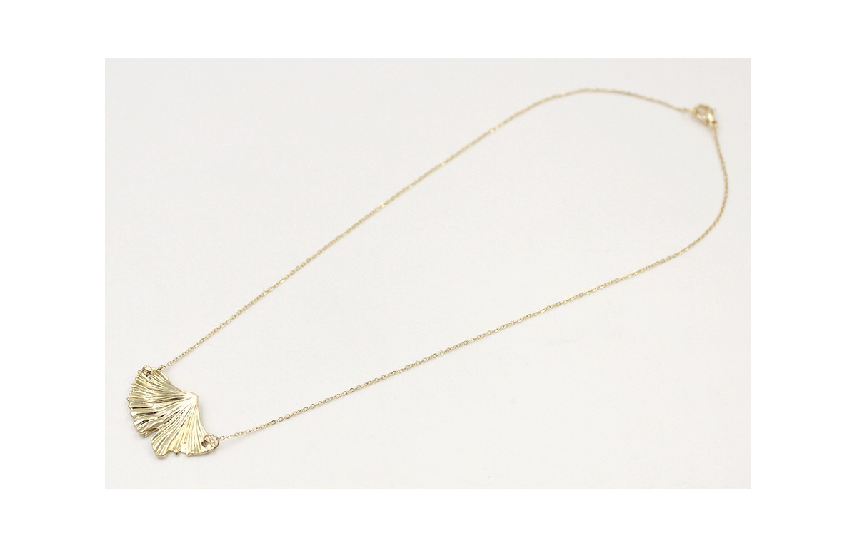 Solitario cadena acero inoxidable eslabón pequeño y colgante de hoja dorada. Largo 38cm.