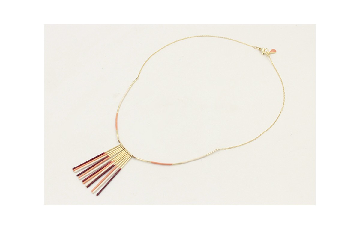 Collar acero inoxidable con cadena de eslabón pequeño 2 barritas curvadas esmaltada salmón y beige con barritas rectas esmaltadas en granate,salmón y beige. Largo 41cm.