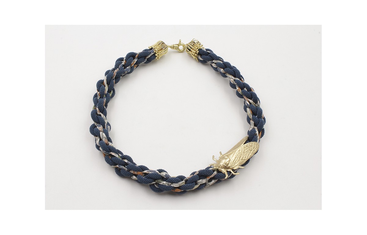 Collar cordón trenzado trenzado azul marino y libe
