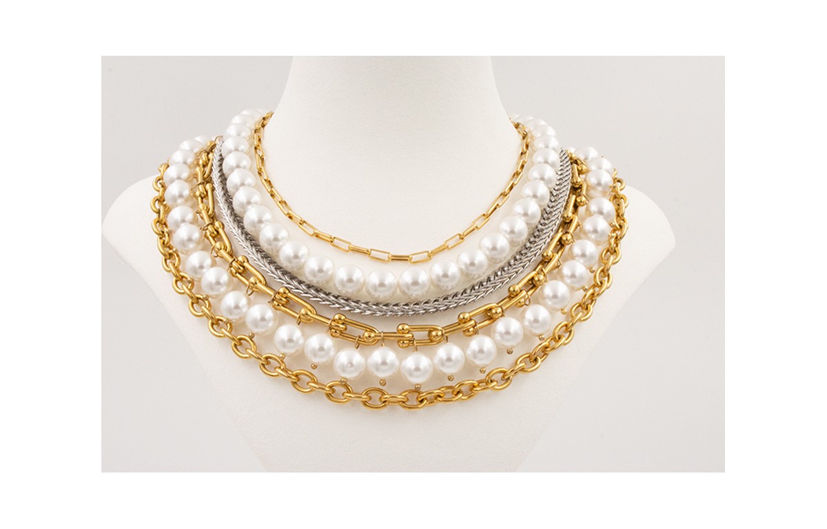 Collar ACERO cadena dorada rectangulos,perlas,cadena plateada plana,cadena eslabon herradura dorada,perlas,cadena dorada eslabones redondos