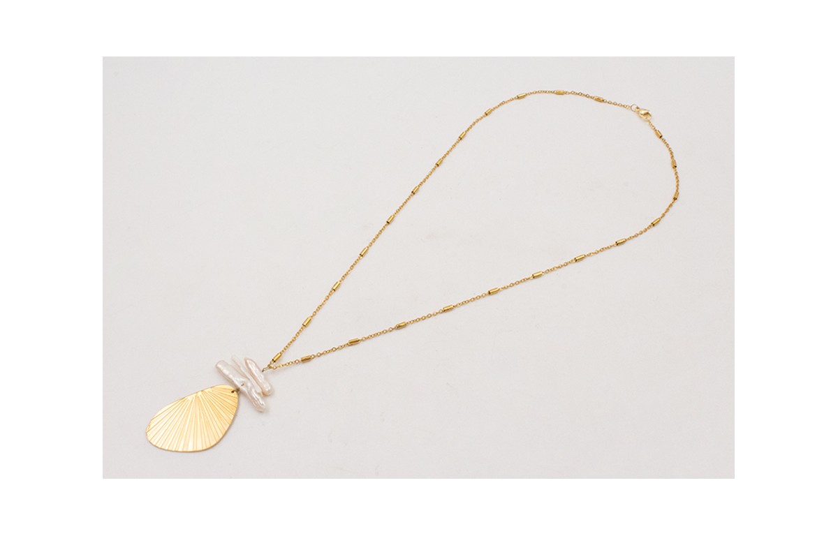 Collar cadena de tubitos de ACERO con ala de mariposa estriada y 3 perlas alargadas
