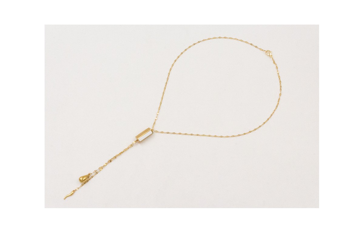 Collar ACERO INOX. Con cadena eslabón ovalado con tubo hexagonal esmaltado blanco con colgante pepita y pimiento.