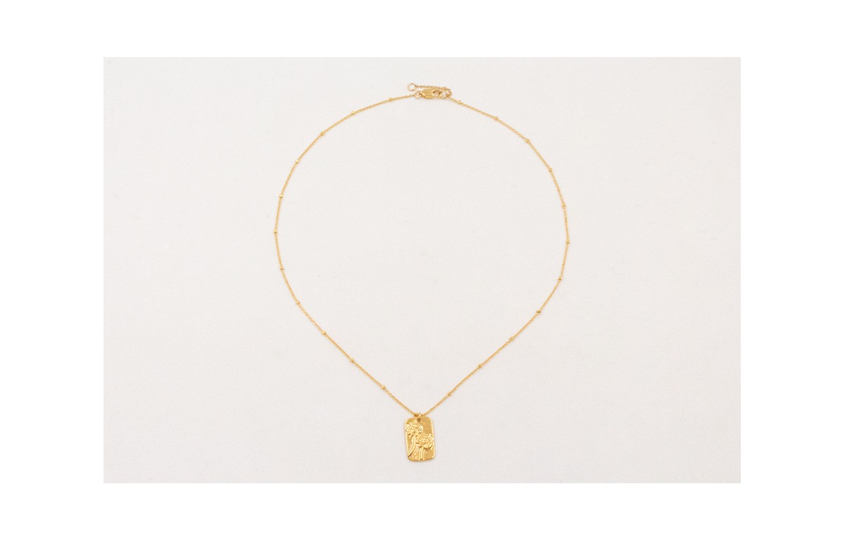 Solitario ORO 18K. Cadena micro bola con colgante flores incrustadas.