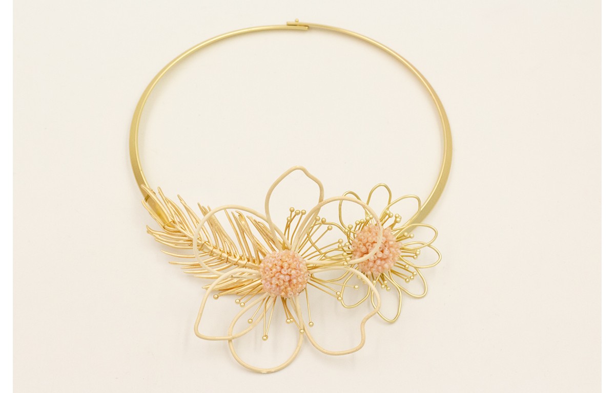 Collar rigido con rama dorada mate, flor de alambr