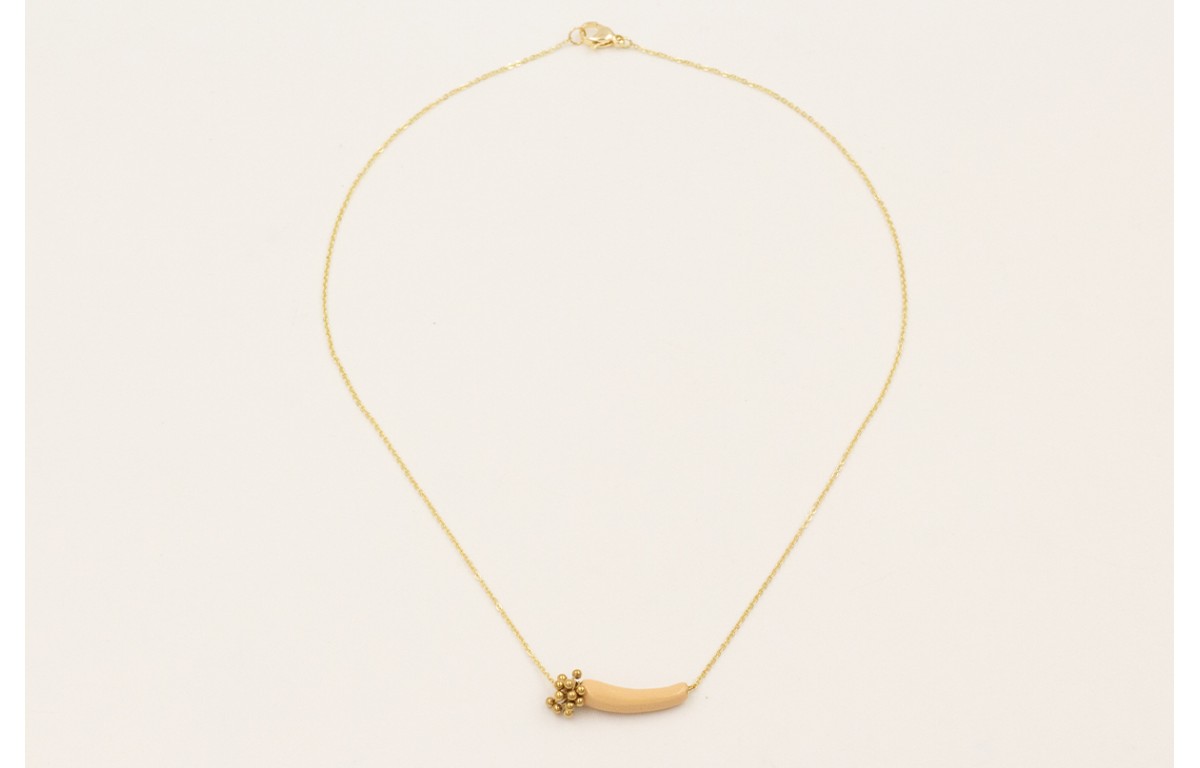 Collar cadena acero inoxidable con tubo curvado esmaltado beige y bolitas acero inoxidable.