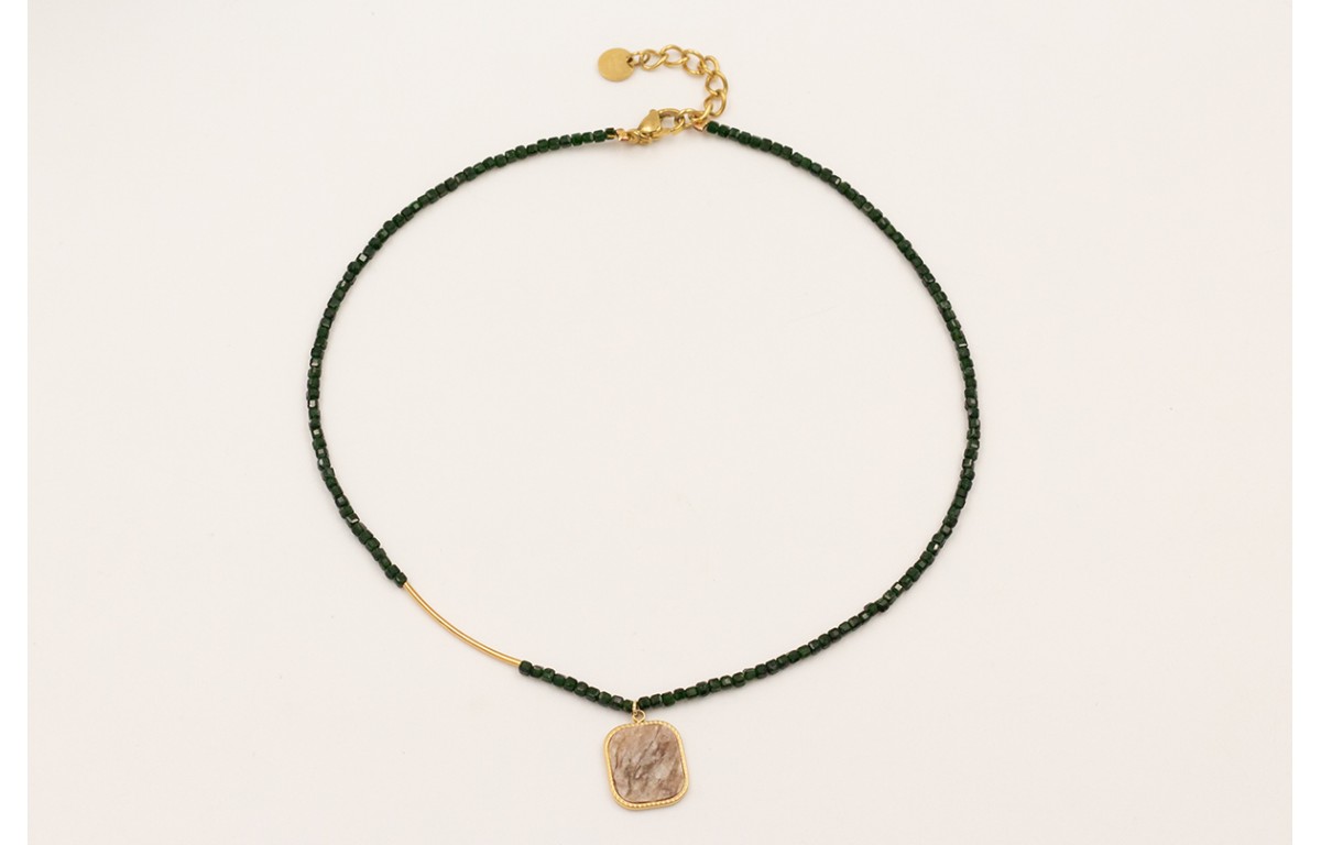 Collar cubos facetados cuarzo verde botella con tu
