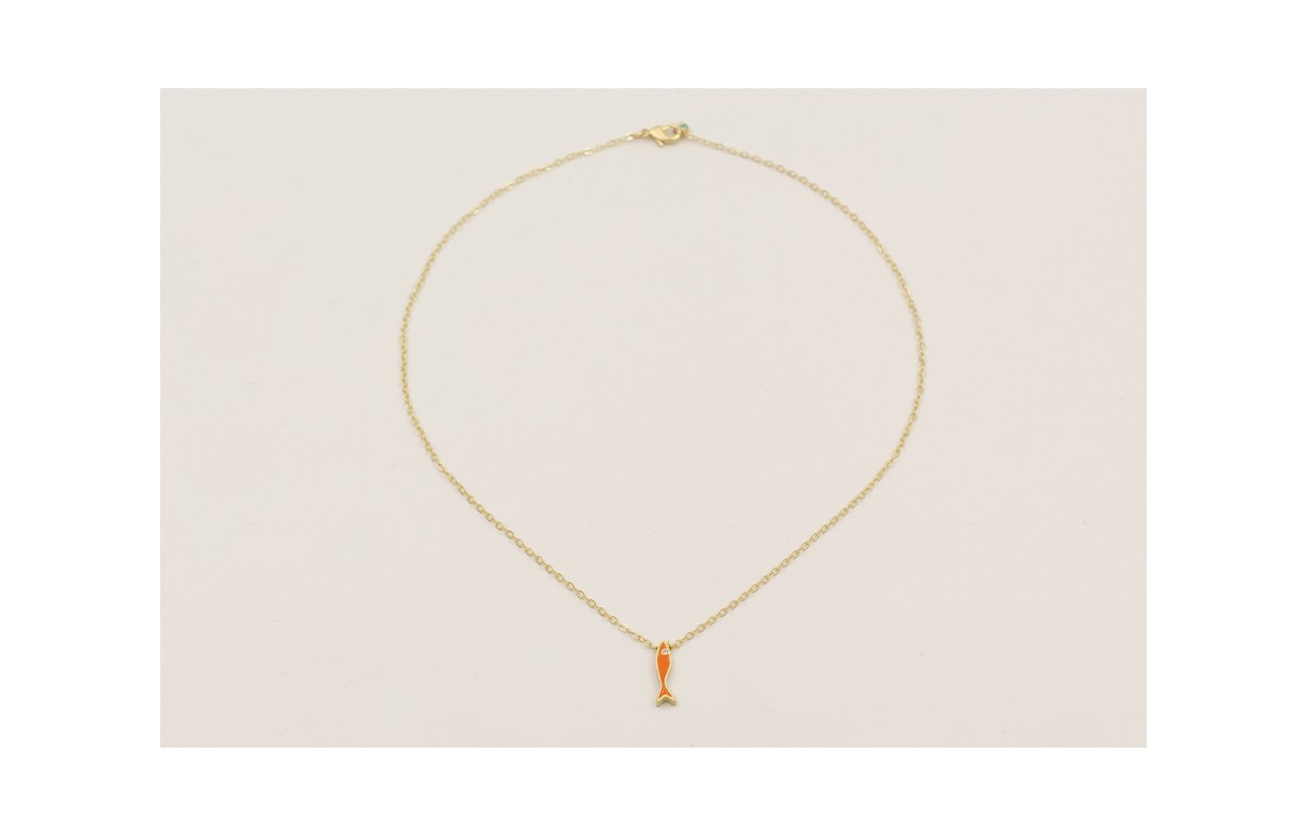 Solitario cadena eslabón pequeño con pez esmaltado naranja.