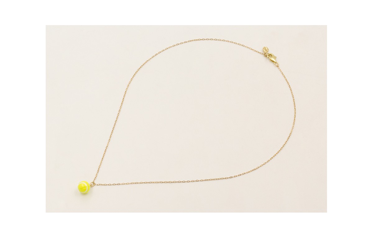 Solitario cadena eslabón pequeño dorado con colgante pelota de tenis esmaltada.