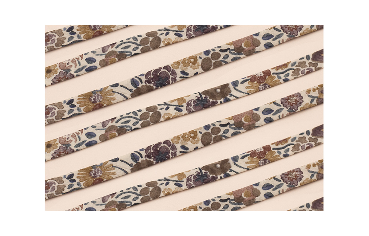 Lazo estampado bies 10mm Flores Azules y tostadas