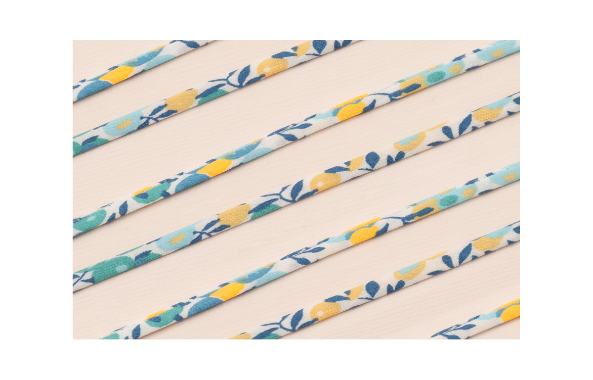 Lazo 4mm Liberty Flores Azul, Turquesa y Fluor