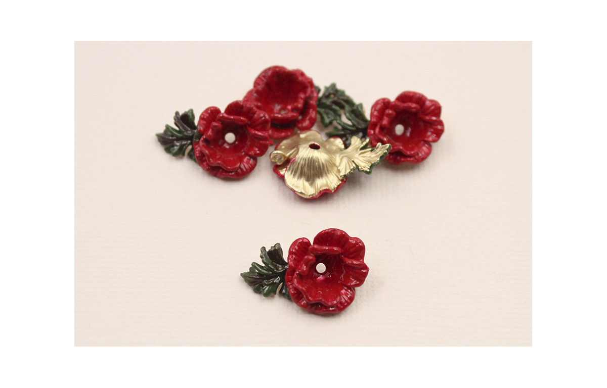 Pieza Flor 21*12mm esmalte manual verde y Roja