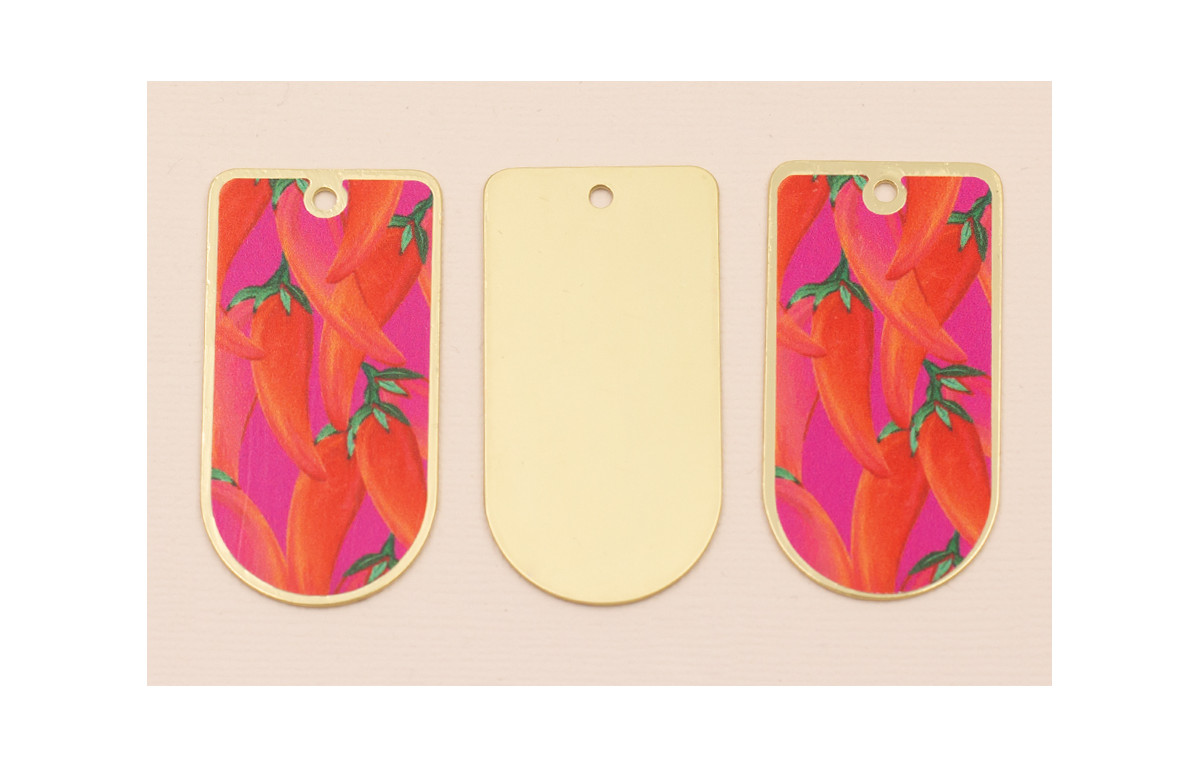 Pieza 50*25 Oro mate Pimientos sobre Fuxia