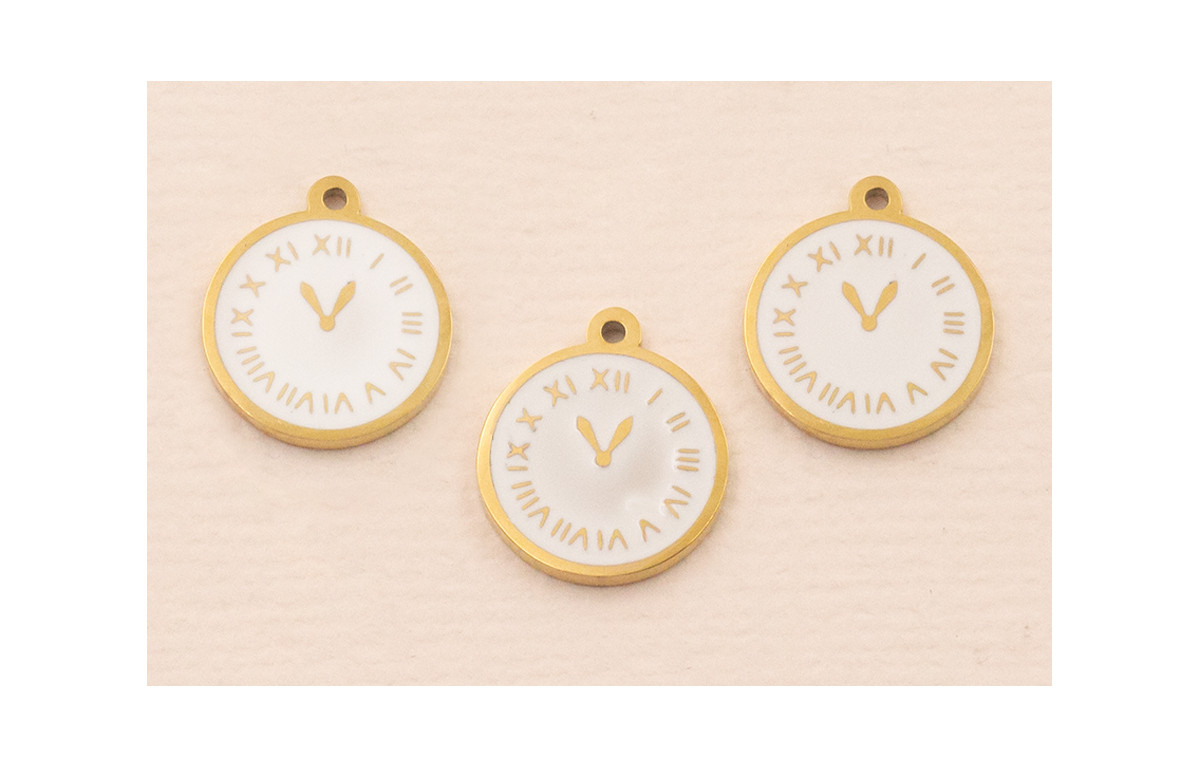 Colgante Reloj Acero 316L 10*10mm Oro Esmalte