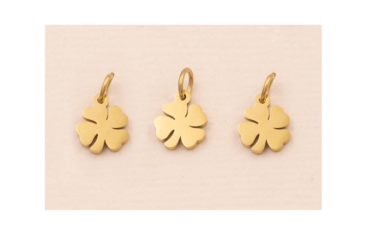 Colgante Trebol 4 hojas Acero Inox 316L 6*6mm Oro