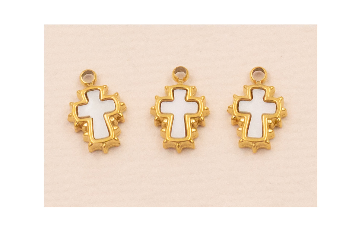 Colgante Cruz con Nacar Acero inox. 316L 7*5mm Oro