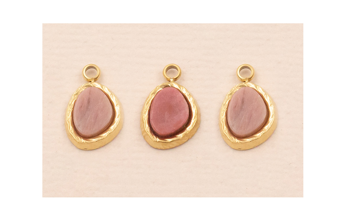 Colgante Acero Inox. 316L 9*5mm con Piedra Rosa
