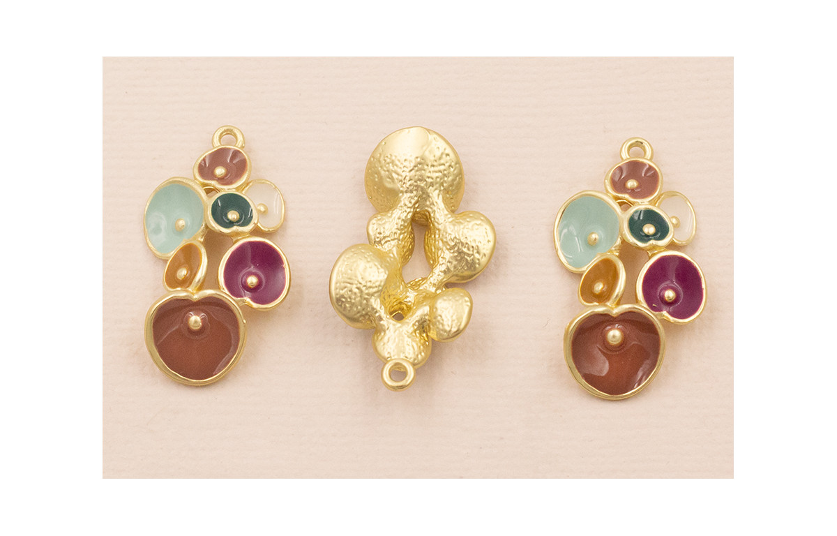 Colgante Flores esmaltadas 27*15 Marrón y Turquesa