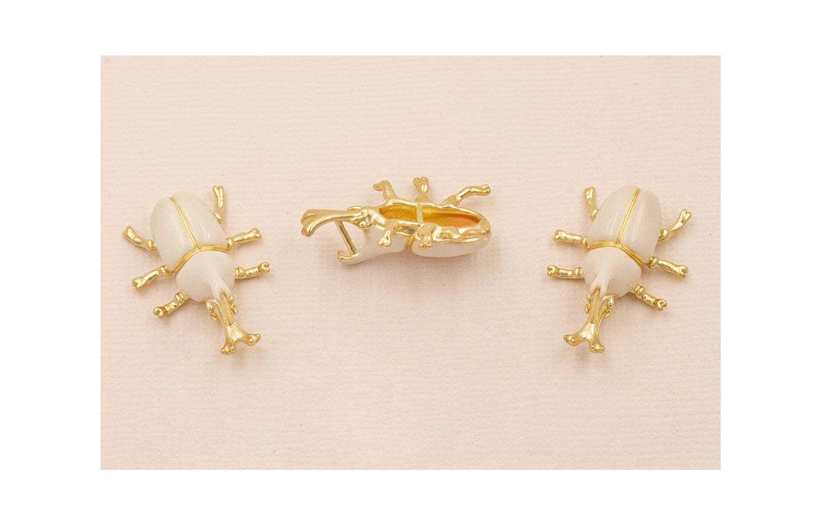 Escarabajo 25*20mm Dorado Mate Esmaltade Beige