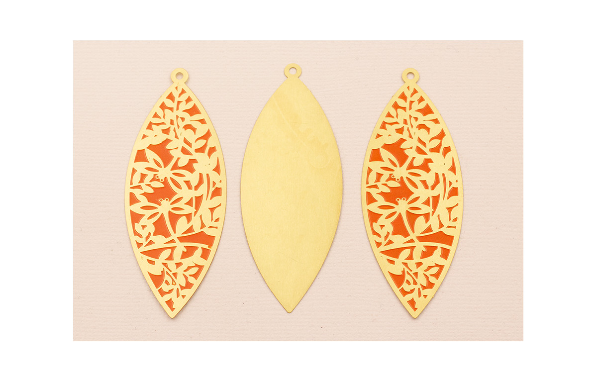 Colgante Ovalado 65*25 Dibujos Naranjas en Latón