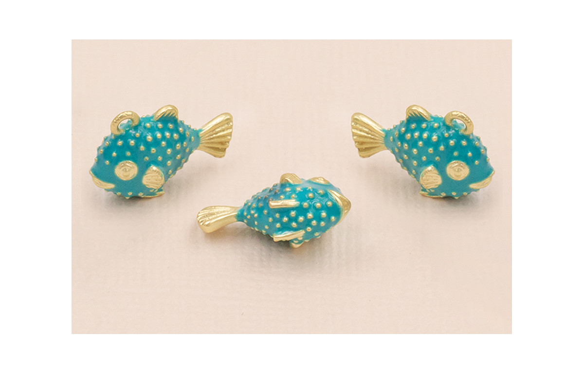 Colgante Pez Globo 20*13mm esmalte Turquesa O.Mate